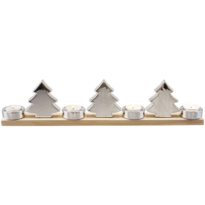 Advents-Teelichthalter – Bäume – aus Holz – ca. 47 x 5 x 10,5 cm