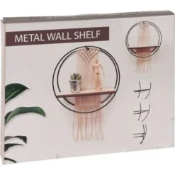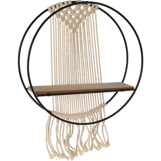 - Dekoratives Hängeregal mit geknüpften Bändern und Holzboden