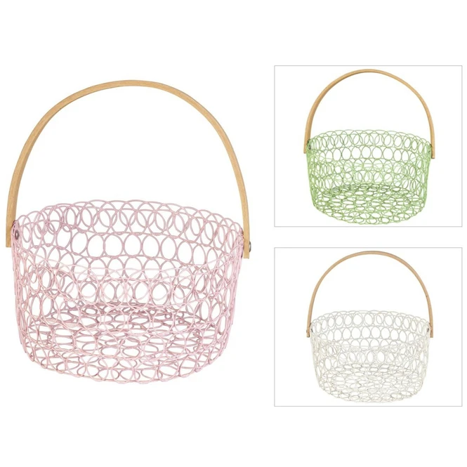 Trendsetter, aufgepasst! Wenn ihr es mögt, eurer Fantasie beim Dekorieren freien Lauf zu lassen und eure vier Wände in Sekundenschnelle in eine behagliche Wohlfühloase verwandeln möchtet, werdet ihr den niedlichen Dekokorb lieben! Dieser ist nicht nur ein echter Augenschmaus, sondern darüber hinaus auch genau das Richtige, um mühelos persönliche Akzente in der Inneneinrichtung zu setzen. Er besteht aus Metall, verfügt über einen Durchmesser von ca. 20 cm und kommt in einer von drei fröhlichen Farben samt hölzernem Henkel zu euch nach Hause (eine Vorauswahl ist leider nicht möglich). Damit fügt sich der hinreißende Drahtkorb nahtlos in jeden Raum ein und vertreibt auch den letzten Winterfrust mit Leichtigkeit. Also schnappt ihn euch und lasst eure Kreativität beim Bestücken frei walten!