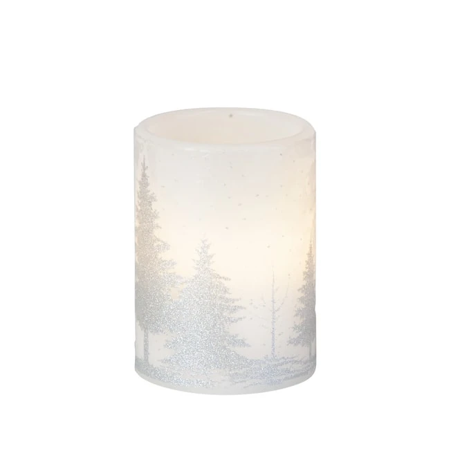 LED Kerze – Bäume weiß/silber – ca. 7,5 x 10 cm