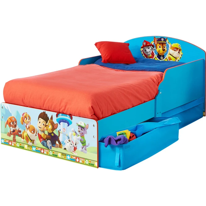 - Lieferumfang: 1 Paw Patrol Kinderbett inkl. Lattenrost und Seitenteilen, 2 Schubladen mit Stoffabdeckung, Aufbau-Anleitung