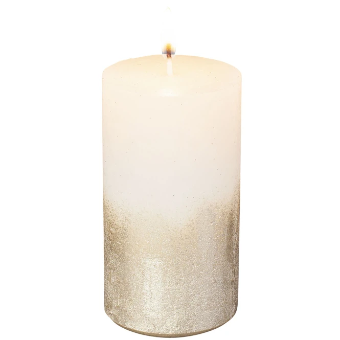 Stumpenkerze – Levi – ca. 6 x 11 cm – weiß/gold
