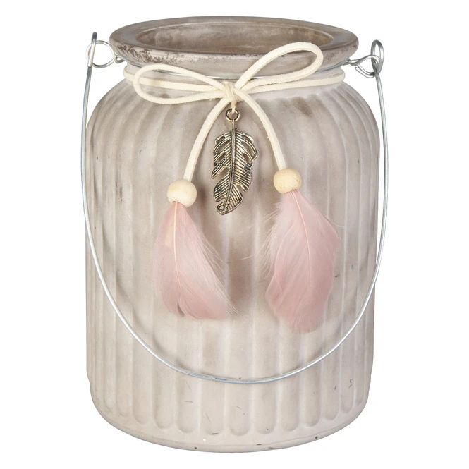 Windlicht – Federn – aus Glas – ca. 11 x 14,5 cm
